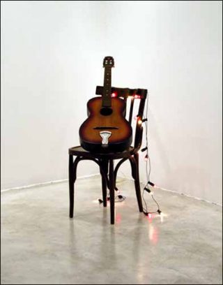 — Clio (guitare et chaise), 2003. Guitare, chaise, guirlandes électriques. 103 x 150 x 70 cm.