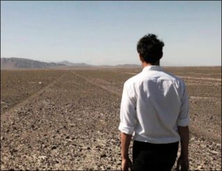«Je m’appelle René Garcia Atuq. Je suis artiste. Je vis à Lambayeque, au Pérou. J’ai rencontré Louidgi Beltrame aux abords du plateau désertique de Nazca. Il filmait son ami Victor Costales, qui arpentant ces immenses lignes tracées il y a quelques 1700 ans par les indiens Nazca, énonçait de mémoire un texte écrit par Robert Morris suite à un voyage ici-même, oui, à Nazca, dans les années 70. Louidgi Beltrame déplaçait le corps de Costales dans cet espace fantastiquement horizontal et avec lui les observations de Robert Morris sur la matérialité de ces «mystérieuses» lignes qui allaient alimenter son approche du Land Art. En emboîtant les pas de Robert Morris, il s’agissait tant de savoir ce que le texte disait que de savoir ce que les lignes disaient. Le texte et les lignes dans le désert ne tombent pas toujours d’accord.