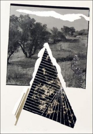 Parmi mes tirages photographiques sur papier au gélatino-chloro-bromure, je choisis ceux qui représentent notamment des dispositifs conceptuels, mises en scènes, autoportraits, actes performatifs. Je déchire ces tirages, arrache, plie, craque, pour déstructurer, détruire l’illusion de la perspective, reconstruire l’image dans l’espace de la feuille de carton, reconstituer dans la discontinuité une image mentale de l’image détruite.