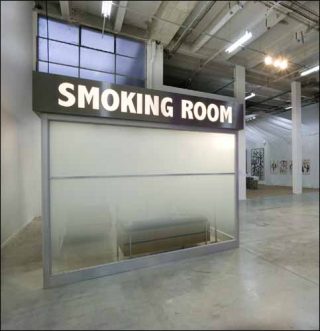 La fiction se nourrit du quotidien, et l’affirme en l’exagérant outre mesure. Leandro Erlich s’inscrit dans la même lignée lorsqu’il transforme un cube de verre en Smoking room, objet pénétrable inspiré des espaces fumeur des aéroports. Cet habitacle, trompe-l’œil tridimensionnel, modifie la perception du spectateur qui joue alors trois rôles: simple observateur, il devient acteur de l’ensemble en entrant dans le dispositif mis en place.