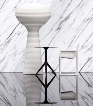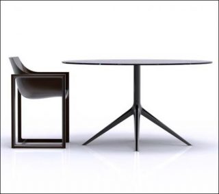Se référant subtilement à sa précédente collaboration avec Philip Starck, Eugeni Quitllet exagère ici les formes creuses pour ouvrir à un au-delà de l’au-delà du meuble. Aussi vides que des coquillages, les objets de la collection incitent presque à y coller une oreille pour y trouver le son de l’océan. Constituée d’un fauteuil, d’un sofa, d’une table et d’un tabouret, la série décline un principe tubulaire pour renouveler la question de l’espace par celle de la vacuité des meules.