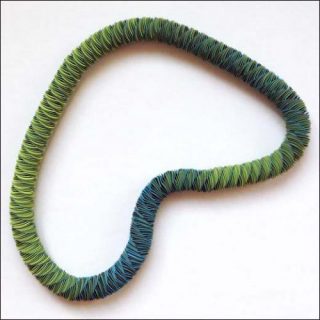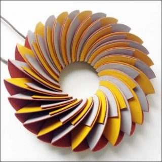 Pour réaliser ses bijoux, Nel Linssen s’inspire des structures et des rythmes qu’elle observe dans la nature, et plus particulièrement des plantes. Partant souvent d’une observation, elle mène ensuite un long travail de recherche pour trouver la solution technique qui lui permettra d’obtenir l’effet visuel ou le mouvement désiré. La créatrice cherche à montrer que le papier est loin d’être une matière fragile. Elle exploite la souplesse de ce matériau pour réaliser des constructions fluides, graphiques et tactiles. Nel Linssen se plait également à jouer avec les couleurs, instaurant dans ses bijoux en papier des effets chromatiques variés.