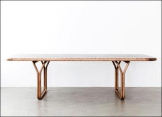 Ce parti pris pourrai passer pour un challenge car au XXe siècle, seul l’art nouveau et l’art déco ont offert une approche propre à leur temps de l’ébénisterie, le premier dans une veine naturaliste légitime, le second en se contentant de styliser des motifs du siècle des Lumières, en les enrichissants à l’occasion de matières comme l’ivoire ou la nacre. Autant dire que Benjamin Graindorge, Sylvain Rieu Piquet, Normal Studio et Sébastian Bergne sont partis d’une page blanche. D’autant plus qu’aucun n’a eu dans sa formation respective une approche de cette technique.