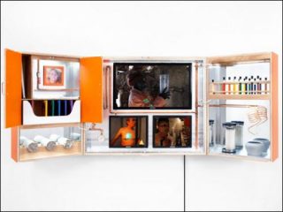 En art, la modernité s’est pourtant constituée contre l’ornement et la dépense somptuaire, c’est pourquoi les artistes ont dû trouver d’autres techniques pour contourner ce tabou ornemental. La première technique fait appel à l’impact psycho-physique des objets dans l’espace, des objets qui, prenant corps, peuvent interagir avec ceux des visiteurs, comme des personnes. Des sculptures et des installations de Thomas Teurlai se dégage un sentiment de vitalité contenue mêlé de danger potentiel: les matériaux qu’il utilise comme le gaz, le feu et l’électricité, et les outils qu’il détourne, produisent des machines à la fois séduisantes et intouchables. C’est cette même attention au bricolage qui permet d’animer ou de ressusciter les objets, chez Thierry Liégeois. Mais chez lui, l’énergie qui circule produit [ou provient d’] un imaginaire façonné par la violence iconographique du heavy metal et un certain cinéma de série B, où zombies, cow-boys et autres robots se livrent à des parties de cartes endiablées.