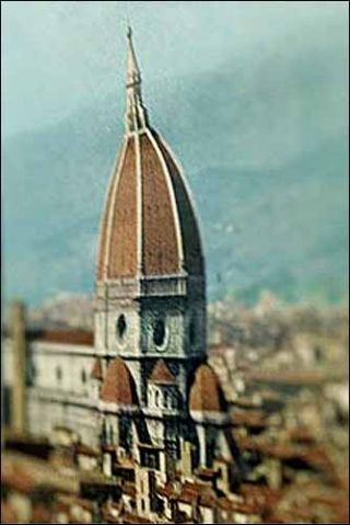 Ces questions sont également au cœur de la seconde série présentée, composée principalement de vues architecturales de mosquées ou d’églises. Ces photographies, proches des cartes postales démodées vendues aux touristes devant les hauts lieux touristiques, comportent toutes un dérèglement de perspectives, une impression de trompe-l’œil ou de distorsions, qui semblent témoigner d’une manipulation technique. Pourtant obtenu sans trucages ni traitements particuliers, ces clichés sont le résultat, là encore, d’une recherche formelle et critique à partir des magazines.