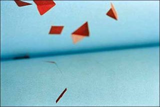 La perte des perceptions communes est le résultat du dispositif mis en place par l’artiste, qui consiste à réaliser, à l’aide d’un objectif macro qui perturbe les rapports d’échelle, des prises de vues de fentes formées par la reliure des magazines. Le sentiment premier d’une photographie prise au ras du sol avec une faible profondeur de champ s’explique alors par la proximité d’une page légèrement bombée, qui génère, sur certains clichés de la série, une forte impression de texture, de matière proche de la peau animale et du sédiment.