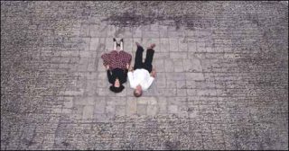 Une détonation retentit. Au sol un homme est mort. Son corps semble reposer sur la cour intérieure de la maison de Munis. Elle le rejoint en se jetant dans le vide. Dans sa chute, lentement, elle se retourne et se retrouve à ses côtés. Dos à terre, elle se pose comme une plume légère. Ensemble les deux corps dialoguent. Les nuages passent dans le ciel. Aucun trait des visages ne bouge.