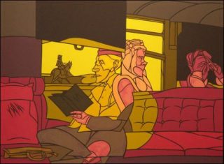 Dans l’exposition consacrée à ses toiles récentes, l’énigme occupe toujours une place centrale. Valerio Adami met en scène des allégories complexes dans des compositions reprenant ses thèmes de prédilection – voyages, musique, littérature et théâtre. Chaque scène décrit «l’imminence d’une tragédie» (Daniel Arasse). La fragilité de la vie et le salut par l’art sont évoqués par sa peinture si caractéristique faite d’aplats colorés cernés de noir. Le dessin est «manière de penser», tandis que la couleur, qui le corrige, en est «l’état d’âme».