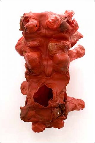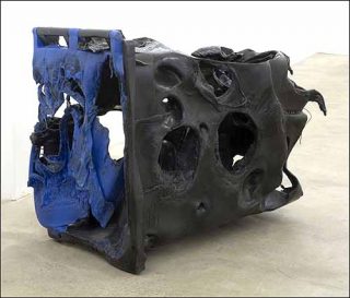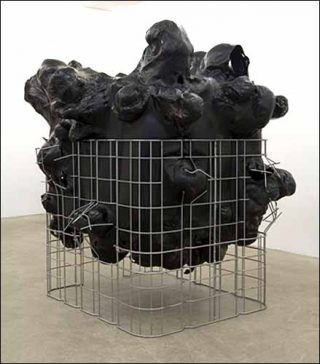 Ces objets, une fois fondus, éviscérés et regonflés apparaissent dans une position de force, capables d’affronter la froide neutralité de l’espace d’une galerie, de prendre le pas sur les grilles qui les contraignent, d’exister enfin face à une «sculpture d’en haut» faite de matériaux riches. On obtient une œuvre monstrueuse, ignoble, corrosive, mais violemment jouissive, magnifiquement dionysiaque.