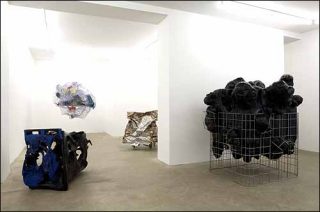 Les cinq pièces présentées chez Alain Gutharc ont chacune pour point de départ un objet urbain facilement identifiable — poubelle, citerne, blocs de chantier, tôles en plastique, etc. —, auquel sont associées les notions de pauvreté, de banal, de décharge.