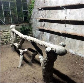 Le second est une autre valeur sûre de la sélection, Stéphane Vigny, invité par Sophie Vinet du centre d’art des Bains-Douches d’Alençon à laquelle Mathias Courtet a confié une carte blanche. Ce dernier se démarque avec les Bites-Chaumont, une rambarde à décors rustiquée, reproduction des célèbres barrières du parc parisien, enfermée dans une serre abandonnée du jardin de l’hôtel de ville. Détournement aux faux-airs de rébus lacanien, la pièce ouvre dans cet espace un nœud d’interprétations dense où le phallus est tour à tour associé à la puissance germinale de la nature, à l’idée d’une protection fantasmatique, comme à celui d’un fétiche intouchable.