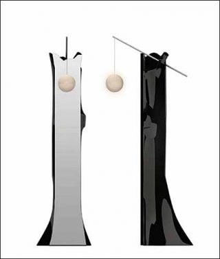 — L’ombre dans l’eau, 2009. Résine laquée, métal laqué, ampoule à incandescence, plexiglas. 260 x 80 cm (diamètre).
