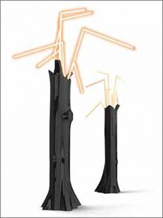 — L’Arbre au mikado, 2009. Résine laquée, ampoules à incandescence, tubes de métal laqué. 400 x 80 cm (diamètre).