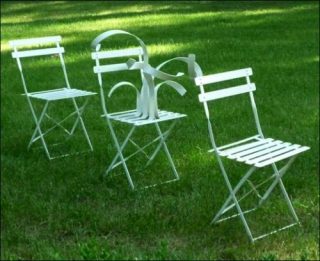 En effet, à l’extérieur, est présentée la série Les Chaises en vrille (2009-2011). Il s’agit d’un ensemble de chaises de jardin dont certaines semblent avoir muté: leur assise se déploie en volutes tranchantes, empêchant quiconque de s’asseoir.