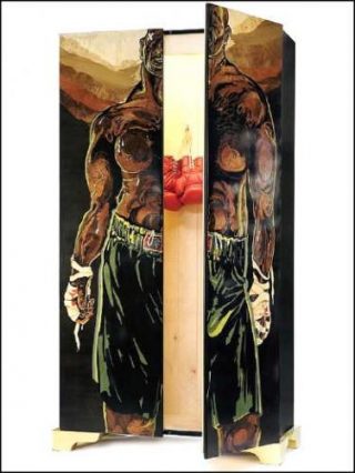 — Armoire Hommage à un boxeur déchu, 2010. Ebénisterie, marqueterie de bois et dorures. Réalisation: Rinck / Lacroix Marecc / Alm Deco.
