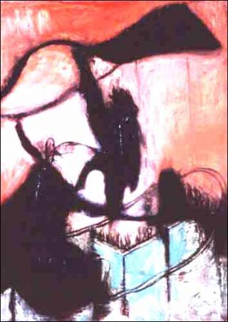 Célébré partout, fêté à la Fondation Cartier, l’œuvre de Garouste semble appartenir à une autre époque. Elle semble être l’argument capable de s’opposer à la mort déclarée de la peinture, elle est une sorte d’alibi. Par son attachement à un sujet sérieux et estimable, elle peut rassurer le spectateur. A travers ses multiples formes, par sa diversité, elle ne peut que convaincre l’amateur d’art qu’il existe toujours des peintres de talent. Toutefois, pour nous, la référence systématique à la littérature et à l’histoire de l’art — Colomba ou Dante et Cerbère — transforme l’aspect créatif de l’œuvre en un faire valoir purement illustratif. Ces réticences concernent une manière de travailler ainsi qu’une facture qui nous semble datée. Si la qualité du peintre n’est pas à remettre en cause, elle apparaît comme anachronique, comme dépassée. Les toiles présentées sont plus un retour à une peinture faîte à la manière de, que le signe d’une vitalité, d’une nouveauté, d’une interrogation contemporaine. Les images qui nous parviennent nous reflètent plus les figures du Greco, de Chagall ou de Picasso que celles d’artistes d’aujourd’hui.