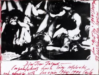 Réalisée en 2001 et acquise par le Musée départemental d’art contemporain de Rochechouart en 2012, l’œuvre Terminal Velocity, étonnant montage photographique monumental, résonne comme une nouvelle forme de peinture d’histoire. Sur sept colonnes, Carolee Schneemann y redonne une dimension humaine et individuelle à un fait historique en zoomant sur les hommes saisis dans leur chute du haut des tours du World Trade Center pendant l’attentat du 11 septembre 2001.