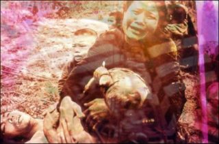 Carolee Schneemann choisit très tôt l’activisme et le pacifisme. En 1965, elle réalise le film-collage Viet Flakes dans lequel elle s’approprie et détourne des images de la guerre du Vietnam sur un fond sonore composé par James Tenney à partir de musiques pop, classiques et vietnamiennes. Deux ans plus tard, la projection de ce film est au cœur de la performance Snows (1967) présentée lors de la Angry Arts Week: Artists against the Vietnam War à New York. Snows, puis Night Crawlers en marge de l’Exposition Universelle de Montréal Expo 67, marquent la réussite engagée des expériences de «théâtre cinétique» ou encore d’«expanded cinema», c’est-à -dire d’extension dans l’espace des pratiques du collage ou encore du cinéma. L’exposition met ainsi en rapport le film de la performance et les collages de Meat Joy et présente simultanément les films Viet flakes et Snows accompagnés de dessins et de photographies. Cette diversité plastique est une constante de la démarche de Carolee Schneemann. Ses créations en réaction à la Guerre du Liban et ses recherches sur l’histoire de la région au début des années 1980 aboutissent à une sculpture en mouvement, des vidéos, un livre d’artiste ainsi qu’aux étonnantes Dust Paintings, abstractions épaisses qui entremêlent des cendres à des composants d’ordinateurs comme les vestiges d’une civilisation.