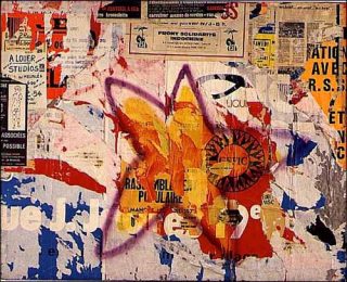 — Rue du Temple, Janvier 1973. Affiches lacérées marouflées sur toile. 130 x 162 cm