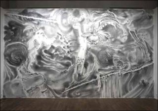 — Ça-et-là , 2005. Fresque murale à la poudre de graphite réalisée au Casino du Luxembourg.