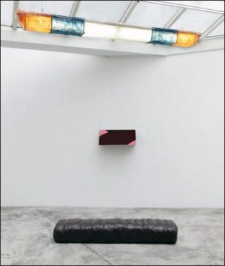 — Boris Achour, Unité!, 2004. Bois, résine acrylique, miroir, film polyane et tubes fluorescents. Dimensions variables