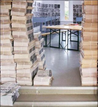 Le recyclage d’articles de journaux, de gros titres, d’images et l’utilisation d’information issue de la presse écrite ont été fondamentaux pour l’art visuel tout au long du XXème siècle. Les premiers artistes à utiliser les journaux comme des ready-made dans leur peinture furent Georges Braque et Pablo Picasso dans les années 1910. Et durant les cent dernières années, les journaux ont été utilisés comme une source d’inspiration (directe ou indirecte) dans d’innombrables travaux d’artistes. Les formes d’expressions sont multiples et vont de l’intervention, de l’incorporation, de l’appropriation, de la reproduction des nouvelles jusqu’aux journaux auto-publiés et aux collages de fragments de journaux.