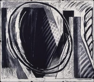 Comme s’il mimait la technique photographique, Moninot surexpose le dessin d’un agrandisseur en l’enfouissant peu à peu dans une trame obscurcissante alors qu’un délicat tracé au crayon en suspens sur un écran de soie révèle ses détours, ses ombres portées dans une lumière éclatante, résolument en opposition avec le trait blanc soustrait au noir profond de la carte à gratter de Gérard Titus-Carmel.