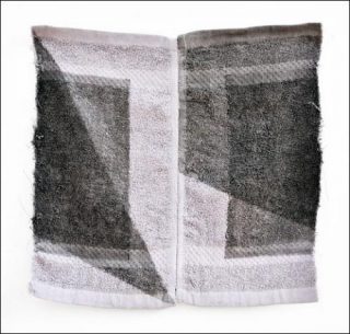 Pour sa 1ère exposition en France, l’artiste présente une série d’œuvres inédites. Usant de serviettes découpées, recomposées, cousues main et teintées d’encre, il dessine à grande échelle des juxtapositions géométriques subtilement ponctuées de couleur. Par la fonction même du tissu — comme éponge du corps et de l’âme — l’intimité, si chère à sa pratique, transpire.
