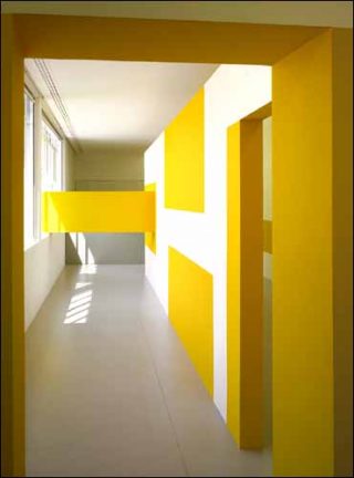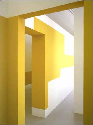 Les parois de cette installation parcellisent l’espace de la galerie, tissent peu à peu un labyrinthe et multiplient les sens de circulation et de perspective. On peut ici et là enjamber un mur, s’accroupir, se faufiler ou se retrouver coincé dans un cul-de-sac. Le chemin du retour ne sera pas forcément celui de l’aller. La trame de sa construction ne résiste pas à l’envie de pousser les murs, de s’échapper par les fenêtres pour se suspendre dans le vide. Elle s’étend comme un élément organique en mouvement.