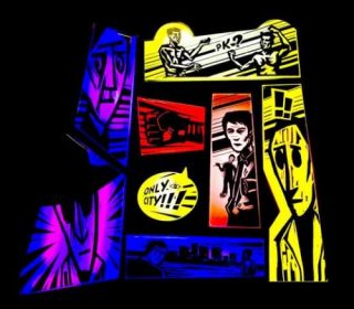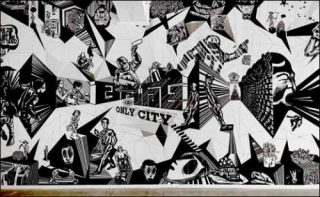 Cette mosaïque (ou patchwork ou tapisserie de Soyeux) tout ce qu’il y a de contemporaine puise à diverses sources. On y sent le goût de l’art pariétal préhistorique (la tête de bison dans le style épuré d’une peinture rupestre), de l’enseigne moyenâgeuse, du romantisme gothique (l’œil hugolien), de la bande dessinée (les cadres découpés à la manière de phylactères), du comic strip en général (le spationaute instruisant des élèves, les robots de récits de science fiction) et du manga en particulier (le visage de la fillette à couettes), de l’affiche politique période Révo Cul (le poing serré ganté genre Black Panther), de l’imagerie réaliste-socialiste (la tête de Mao rayonnante), de la xylo et de la litho expressionniste (le boucher saisi au moment de son coup de couperet, les ouvriers d’une aciérie autour du métal en fusion), de l’art mineur (un chanteur folk à guitare sèche devant un micro, un musicien de jazz soufflant dans sa trompette), etc.
