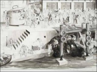 Mais au-delà de l’attribution — non dénuée d’humour — de ces noms, au-delà de cette façon surprenante d’introduire certaines formes géométriques abstraites dans cette représentation au réalisme le plus cru, c’est toute une cosmogonie qui nous est proposée, où en particulier les relations à l’espace et au temps se trouvent entièrement réévaluées et redéfinies.