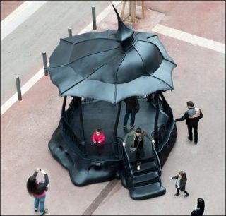 «Leur proposition, à la fois architecturale et sonore, est formulée à partir d’une logique de distorsion. Inspirés du kiosque à musique situé en haut de la Canebière, les artistes ont créé une micro-architecture où se diffusent filtrés et remixés des voix, bruits de machines, bribes musicales provenant de l’Opéra. Par cette étonnante ventriloquie, les artistes matérialisent un autre «espace» dans l’espace. Opéra noir, à la fois mirage et écho de deux lieux repères de la ville, se propose comme une interface ouverte et poreuse dans l’espace public.»