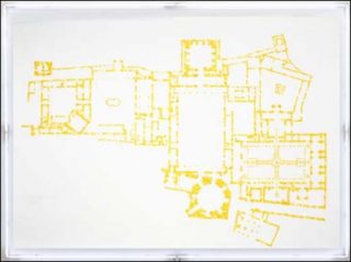 La sélection des plans interprétés par l’artiste — Alhambra Interpretation Opus n°1, Gaudi Interpretation Opus n°1, Rohe Interpretation Opus n°1... — retrace une histoire de la modernité tandis que la réalité abstraite représentée par le dessin architectural fonctionne comme une matrice pour Sarkis qui se l’approprie par le biais des couleurs et des empreintes, signature tactile venant souligner les propriétés physiques du support. Les lettres en néons redonnent à l’oeuvre son aura perdue, invitant tantôt le spectateur à un silence méditatif («Calme») tantôt projetant l’oeuvre dans la possibilité de l’écriture d’une mémoire, l’inscription apparemment mystérieuse «19380» faisant référence à la biographie de Sarkis en multipliant par dix sa date de naissance.