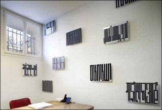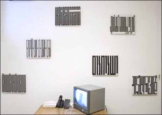 En écho à Now is the Time, douze diasecs, disposés dans le bureau au fond de la galerie, reprennent la phrase de Martin Luther King «I have a dream». Ces petits panneaux, issus d’une série de vingt-cinq, sont rédigés avec des lettres très élancées, noires toujours, dans plusieurs langues, principalement indiennes mais aussi en anglais ou en hébreu et forment une sorte de Babel miniature in progress.