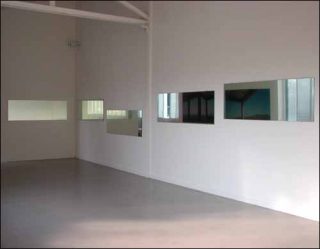 — Miroirs, 2003. 6 miroirs, film à vision angulaire. 180 x 60 cm chaque.