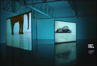 — Play Dead : Real Time, 2003. Installation Video. Vue de l’installation aux National Galleries of Scotland, Royal Scottish Academy building, Edinburgh.