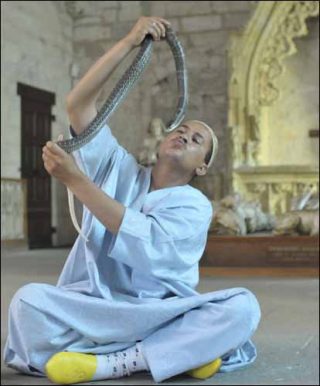 Douglas Gordon s’invite également dans la chapelle du Palais des Papes avec une installation vidéo, véritable Arche de Noé composée d’ânes, serpents, scorpions, chat noir…