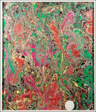 Patrice: Ce qui compte c’est la mise en relation de ces deux ensembles. Pour cette exposition, nous pensions une famille de «marbrés» et un groupe de «mueslis». En ce qui concerne les «marbrés», ce sont des corps gras déposés sur de l’eau, c’est fluide, expérimental. Le moment choisi est imprimé sur papier; on donne des orientations, mais c’est très accidentel.