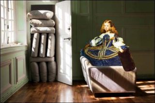 La série «Femmes d’intérieur» d’Elene Usdin (née en 1971) est composée d’œuvres uniques, peintes à la main sur la photographie. L’artiste, illustratrice et plasticienne autant que photographe réinterprète les tableaux célèbres de l’histoire de l’art classique ou moderne (par Raphaël, Ingres, Schiele, Balthus etc), portraits de femmes peints par des artistes-hommes.