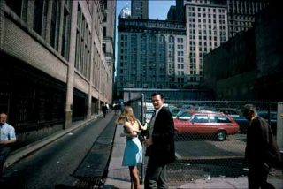 A l’instar de ce face à face entre un noir et un blanc, sur un trottoir new-yorkais, dont on ne peut déterminer s’ils se jettent dans les bras l’un de l’autre, s’ils s’évitent, se séparent ou anticipent leur collision (New York, 1976), l’anecdote visuelle ou narrative demeure irrésolue. Le cadre est large, et fourmille d’informations. C’est souvent la couleur qui en structure, avec outrance, la composition: des rouges vifs qui conduisent ou bloquent le regard, des contrastes stridents, ou des monochromes glacés.