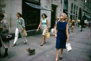 L’exposition couvre la période charnière des années soixante-dix, quand s’effectue le passage du noir et blanc à la couleur. Influencé, comme Friedlander, par la leçon de Robert Franck, Meyerowitz participe de cette mouvance de la Street Photography, initiée par Walker Evans, qui, muni de Leica, se coule dans les turpitudes urbaines pour en extraire des tranches de l’ordinaire. Un ordinaire fait de collisions et d’indifférences, de trépidation et de saturation visuelles. Meyerowitz, directeur artistique dans une agence de publicité, est très vite tenté par la couleur. Mais dans les années soixante, celle-ci est réservée aux usages triviaux de la photographie commerciale: au MoMA, c’est en noir et blanc que Friedlander, Winogrand, et Arbus exposent.