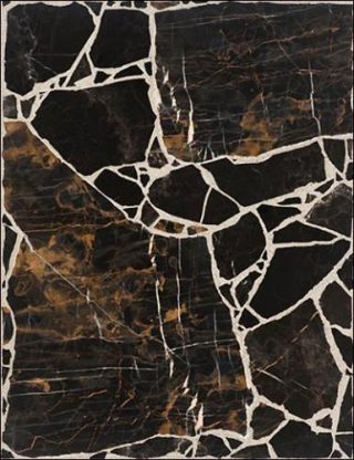 Avec la deuxième série de l’exposition, Big Bang Series (in Ten Steps), Analia Saban offre un contrepoint rationnel au tumulte de la série Outburst (Living Room). Cette œuvre est la continuité de son travail antérieur élaboré autour de pièces en béton. Ce matériau, base indispensable aux fondations d’une maison, est rendu ici inutile et élevé au rang d’œuvre d’art. L’agrégat de sable et de particules de marbre, qui est visible dans la première pièce de l’ensemble, est lentement densifié jusqu’à ce que le marbre envahisse progressivement toute la surface de la toile. A la fin de la série, les morceaux de marbre grandissants ne laissent apercevoir que de fines veines de béton. La pièce ultime est elle composée d’une unique plaque de marbre noir apposée sur la toile.