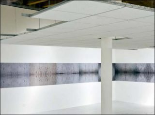 L’eau apparaît comme un matériaux central de l’exposition, utilisée dans ses différents états, jusqu’à être imperceptible. Par une intervention minimale, l’artiste rend flottantes les limites spatiales de l’exposition: la salle caverneuse du fond de la galerie peut paraître vide, la vue en hauteur rend indiscernable le sol de l’espace, devenu une sorte de trou noir dont on ne sait pas s’il s’agit d’un puits, d’un miroir ou d’un vide.