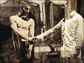 Dans ces face-à -face troublants et l’énergie ludico-destructive appuyée par un rire blafard, attributs patentés du double maléfique, de la part sombre qui gît quelque part en chacun de nous, les invocations, les incantations de l’homme -— « Je suis bien ici, je veux y rester… tu es bien ici, tu vas y rester !… », « Je m’excuse, je demande pardon, je m’excuse, je demande… » -— ne pourront pas provoquer d’apaisement.