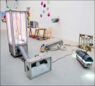 Une moto est réduite à l’état d’une mince surface sous l’action d’une meuleuse qui l’a privée de toute la virilité qui faisait son identité. Des ustensiles électriques de cuisine sont branchés en circuit mais fonctionnent de façon ralentie une fois mis en marche, comme si une force s’opposait à leurs élans naturels. Ces développements fictionnels d’éléments familiers dressent un tableau sombre et inquiétant où la machine dévoile toute son ambiguïté: à la fois utile et dangereuse, fascinante et repoussante.