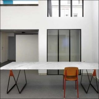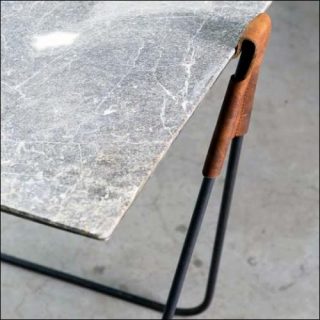 In Vein est une table en marbre montée sur tréteaux. Son plateau supérieur, une fois retourné, se double d’un miroir, transformant alors la table en un véritable objet de décoration. Le matériau utilisé pour cette pièce est un marbre belge gris des Ardennes subtilement veiné. Le fond ou «ventre» de la table est exécuté avec une technique appelée hydro-formage. Une feuille d’acier inoxydable est soufflée en utilisant la pression de l’eau et façonnée en une forme organique qui ne nécessite pas l’utilisation d’un moule. Ce ventre massif donne à la table sa puissance et supporte la couche supérieure de marbre.