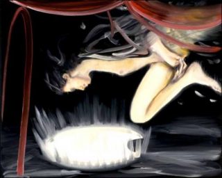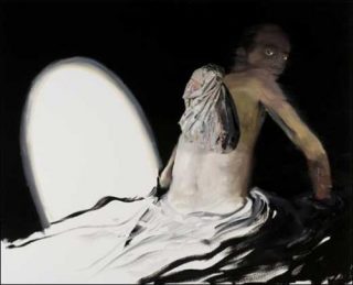 Enfin, l’usage de la réserve donne tout son éclat à cette lumière éblouissante enveloppant le jeune homme de l’Adieu. Elle semble aussi aspirer (inspirer) la jeune femme lovée de Pain is Love. Ce thème de la béance, du trou, mais aussi de l’ouverture prolonge ce travail sur l’espace et renvoie aux célèbres figures de Francis Bacon, «aspirées» par des bouches de lavabo dans son Triptyque de mai-juin 1973 (Collection Saul Sternberg). Comment fuir un monde abject? Comment créer du «possible» aurait dit Deleuze.