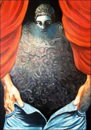 Des têtes tombent aussi! On ne s’étonnera donc pas de croiser Lewis Carroll et Barbe Bleue dans ses récents tableaux. Raphaëlle Ricol maquille les apparences ou les met à nu, chahutant les attributs que l’on prête communément à l’homme, la femme, l’enfant et l’animal. Elle s’amuse aussi des jeux de pouvoir qu’elle observe avec l’acuité d’une artiste née sourde. Par énergie sans doute, sa peinture étourdissante et solaire sait se passer d’ironie.