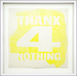 — John Giorno, Thanx 4 Nothing, 2012. Cadminum Yellow, Faber-Castell pencil on paper. 45,72 x 45,72 cm