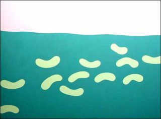 — Untitled (Peanuts Under Horizon), 2002. Acrylique sur lin. 132 x 196 cm.